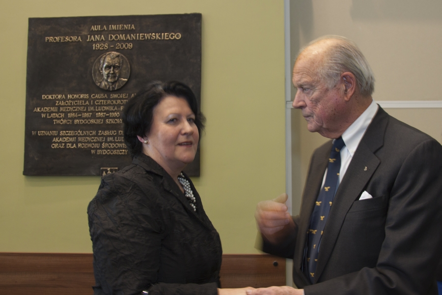 11 marca 2011 r. nastąpiło odsłonięcie tablicy poświęconej pamięci Profesora zw. dr. hab. med. Jana Domaniewskiego, założyciela i czterokrotnego Rektora Akademii Medycznej im. L. Rydygiera w Bydgoszczy, doktora honoris causa swojej Alma Mater. Uroczystość odbyła się w auli im. prof. Jana Domaniewskiego w budynku audytoryjnym przy ul. M. Curie Skłodowskiej 9 w Bydgoszczy.