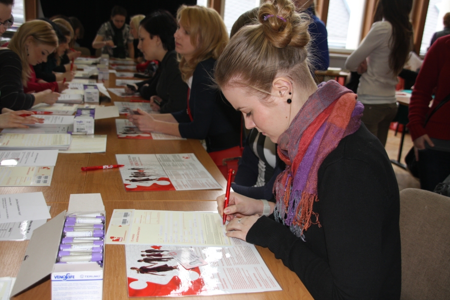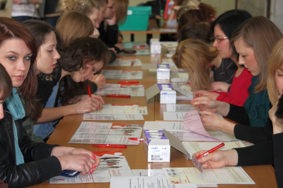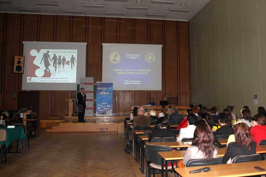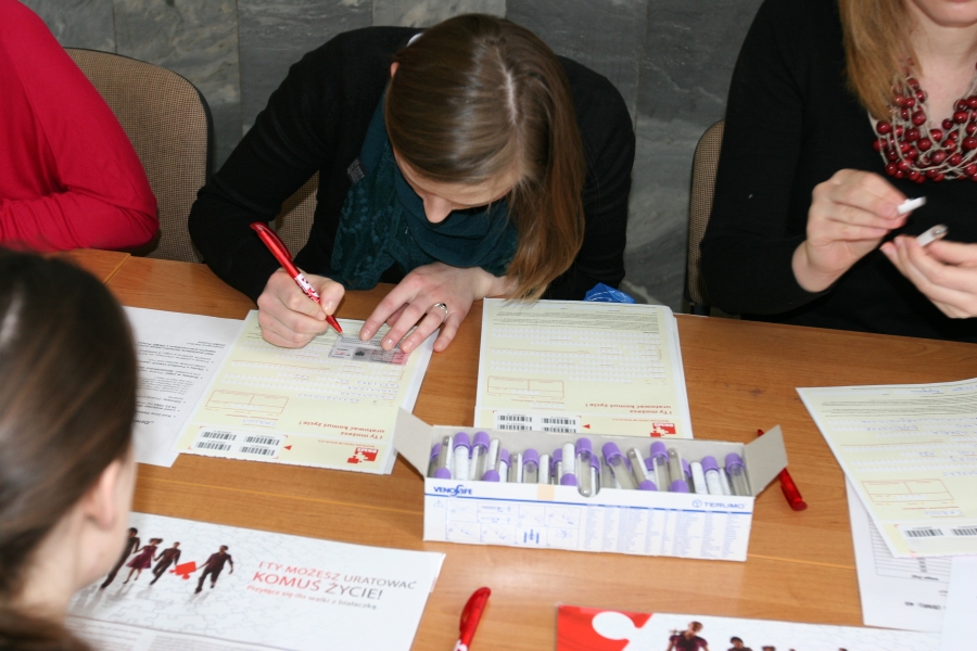 Podczas Dnia Dawcy Szpiku zorganizowanego 16 marca 2011 r. w Collegium Medicum UMK przez Zakład Kosmetologii Wydziału Farmaceutycznego tłumnie stawili się potencjalni dawcy szpiku kostnego i komórek macierzystych. Zarejestrowało się 512 osób Akcja prowadzona była pod hasłem |