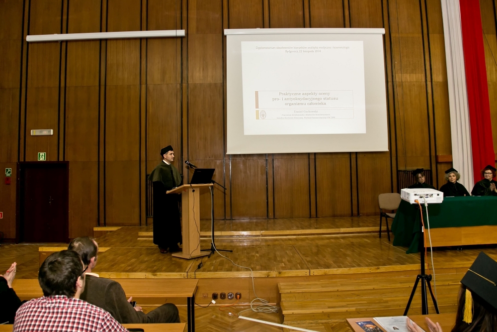 22 listopada 2014 r. o godz. 12:00 w Auli A i B Collegium Medicum UMK przy ul. Jagiellońskiej 13 w Bydgoszczy odbyło się uroczyste wręczenie dyplomów absolwentom kierunku analityka medyczna i kosmetologia.