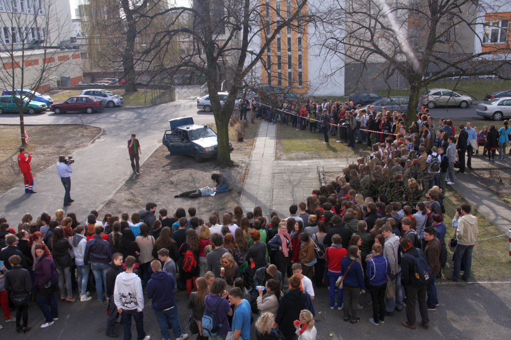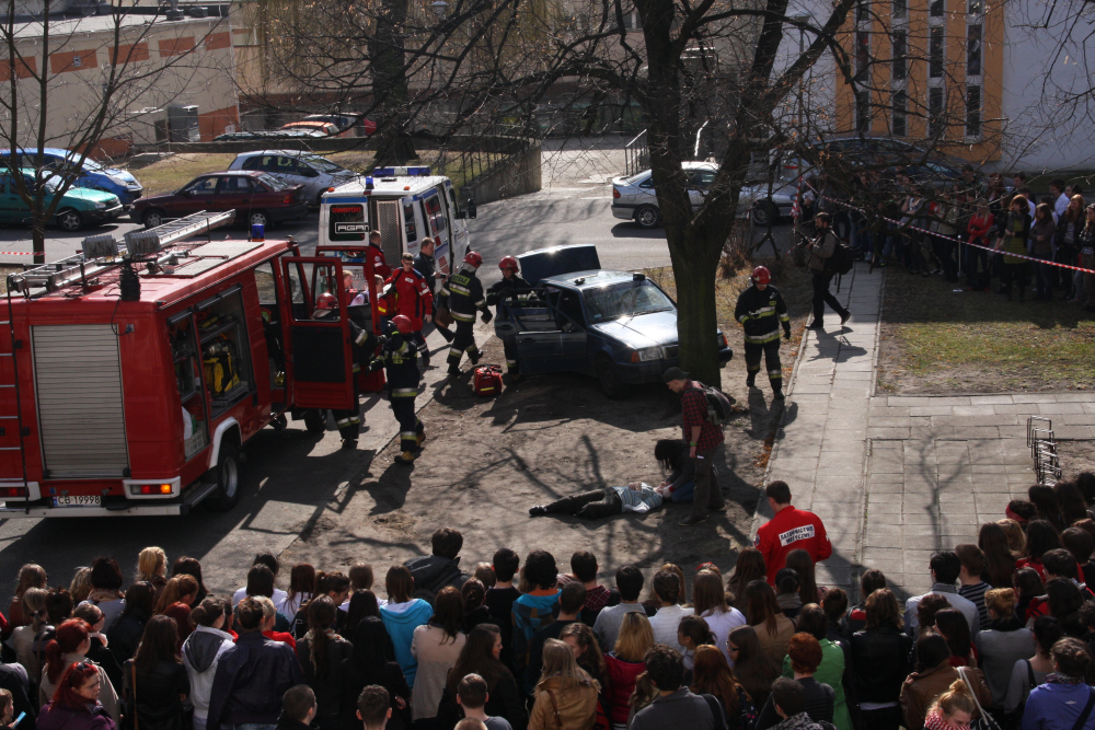 Gości powitali również sami studenci i przedstawiciele organizacji studenckich: Samorządu Studenckiego, IFMSA-Poland, Studenckiego Towarzystwa Naukowego, Młodej Farmacji, AZS-u. Następnie wszystkich zgromadzonych maturzystów czekała nie lada atrakcja. Studenci Ratownictwa Medycznego zaprezentowali jak uratować poszkodowanych w wypadku drogowym. Po dawce sporych emocji tegoroczni maturzyści mieli okazję wziąć udział w specjalnie przygotowanych warsztatach.