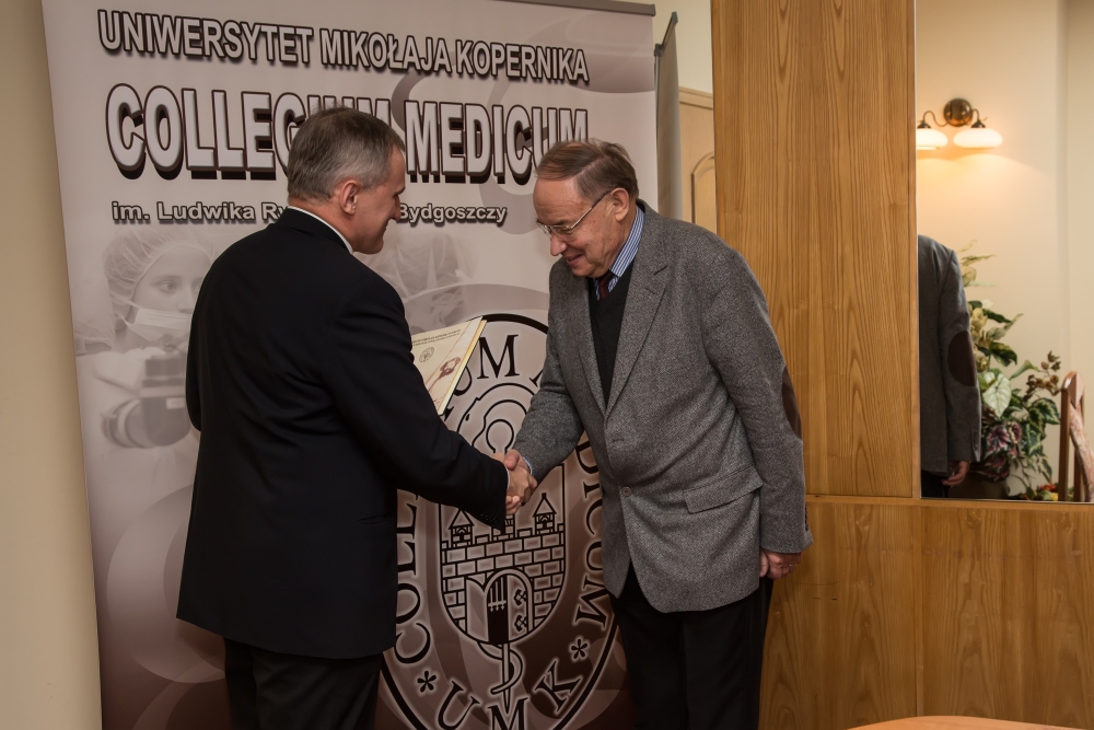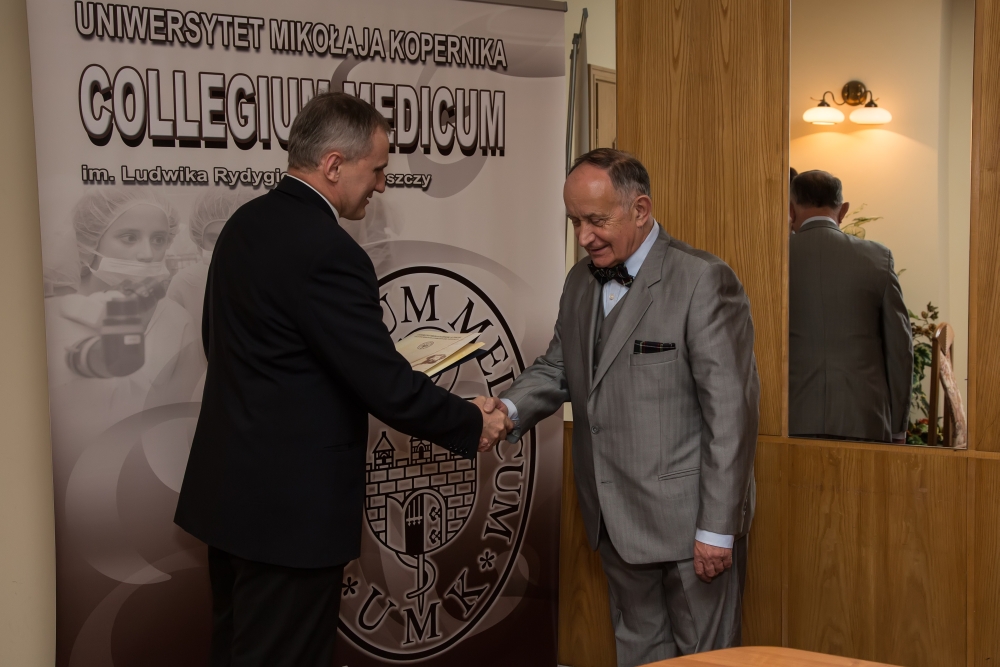 15 października 2013 r. profesorowie, którzy zakończyli pracę na naszej Uczelni, otrzymali z rąk Prorektora ds. Collegium Medicum, prof. dr. hab. Jana Styczyńskiego podziękowania za wieloletni wkład w pracę naukową, dydaktyczną i organizacyjną na rzecz Collegium Medicum UMK.