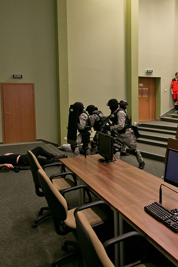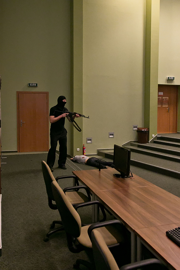 Uzbrojony terrorysta w Collegium Medicum UMK? Tak. Wtargnął na aulę i oddał trzy strzały w stronę zebranej młodzieży. Na szczęście do akcji wkroczyli antyterroryści z Komendy Wojewódzkiej Policji w Bydgoszczy oraz ratownicy medyczni z Akademickiej Grupy Ratowniczej.