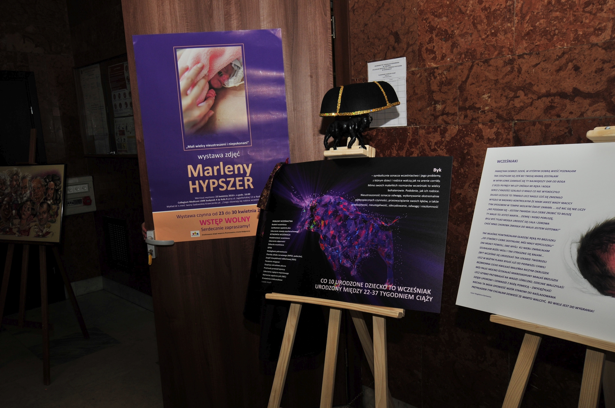 W dniach 23-30 kwietnia 2018 r. w Collegium Medicum UMK odbywała się wystawa fotografii autorstwa Marleny Hypszer pt. „Mali Wielcy Niepokonani i Nieustraszeni”. Celem wystawy było przybliżenie problematyki wcześniactwa. Na wernisażu wystawy, który odbył się 23 kwietnia 2018 r. dr hab. n. med. Iwona Sadowska-Krawczenko wygłosiła wykład „Czego obawiają się rodzice wcześniaków?”.