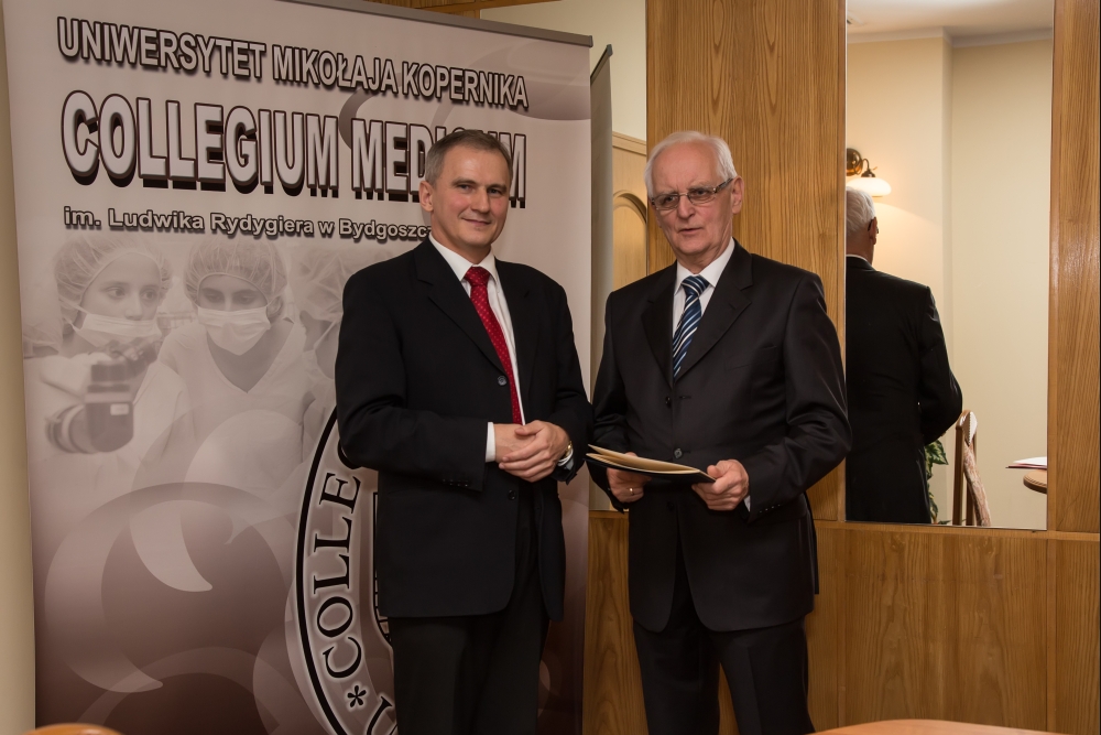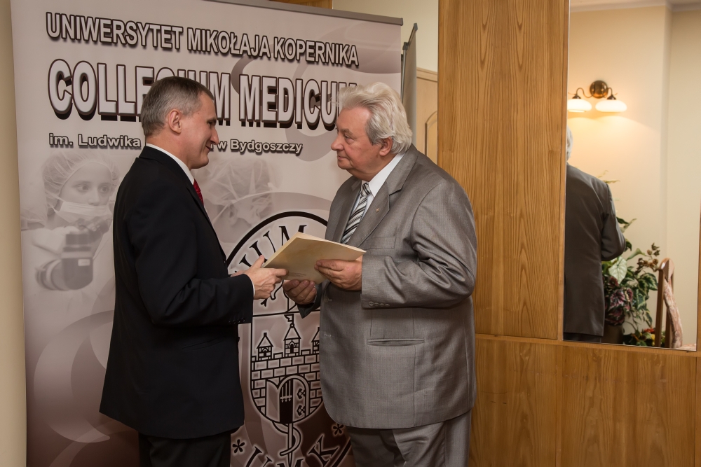 15 października 2013 r. profesorowie, którzy zakończyli pracę na naszej Uczelni, otrzymali z rąk Prorektora ds. Collegium Medicum, prof. dr. hab. Jana Styczyńskiego podziękowania za wieloletni wkład w pracę naukową, dydaktyczną i organizacyjną na rzecz Collegium Medicum UMK.